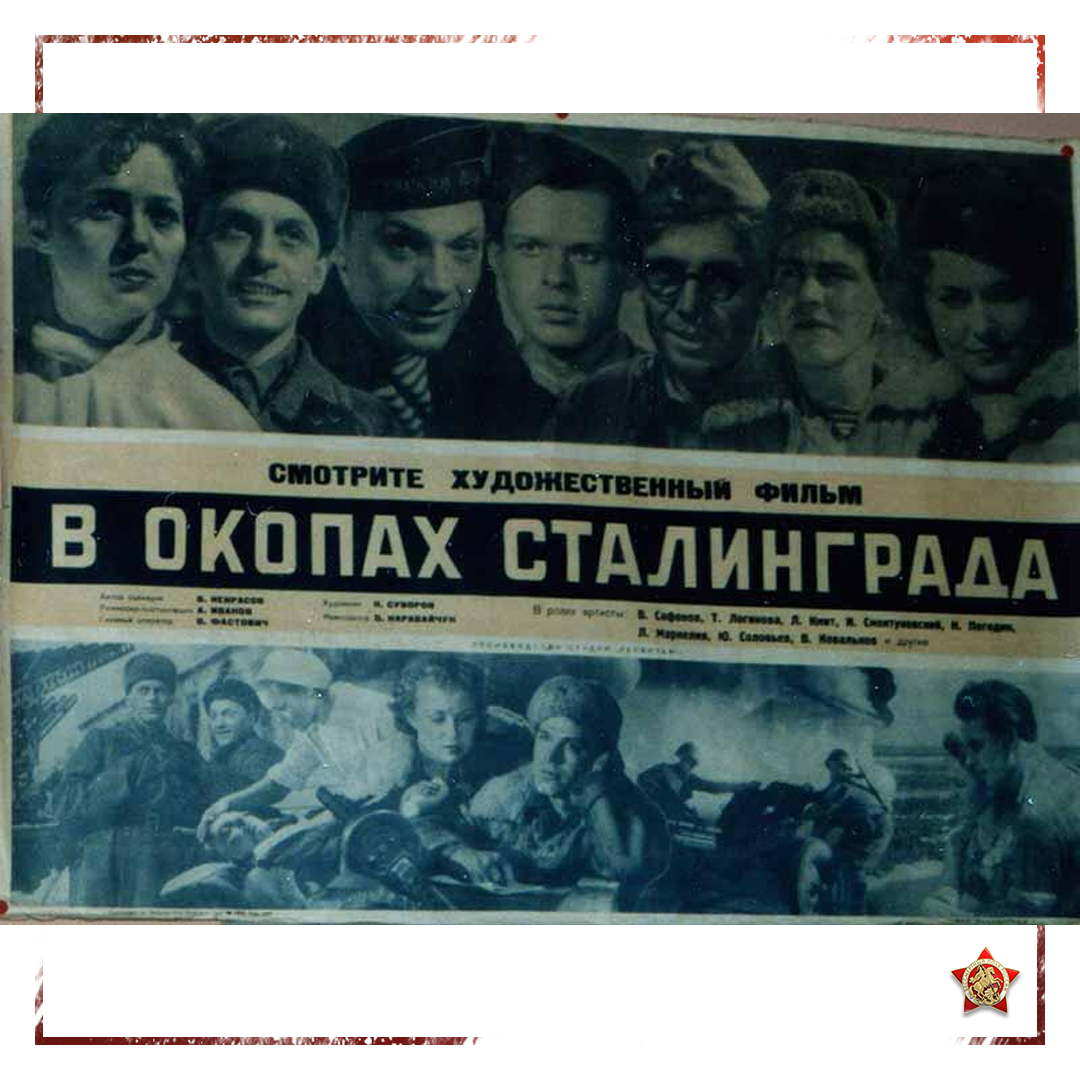 ? Как вся русская литература вышла из «Шинели» Гоголя, так и советская военная проза вышла из «окопов Сталинграда» Виктора Некрасова – повести полкового инженера 1047-го стрелкового полка 284-й стрелковой дивизии 62-й армии, в 1947 году получившей Сталинскую премию по литературе. В 1956 году руководство студии «Ленфильм» доверило экранизацию повести бывшему пулеметчику Русской Императорской армии, бившему немцев на фронтах Первой мировой войны Александру Иванову, постановщику фильма «Звезда» по одноименной повести Эммануила Казакевича — лучшей книге о фронтовых разведчиках.