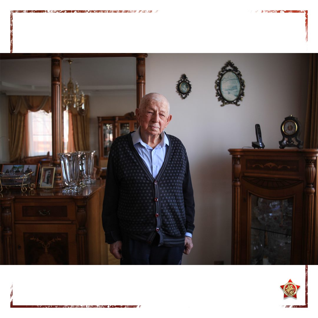 💭 «Помню, проснулся рано утром, вышел из гостиницы, смотрю: ребята наши собрались у репродуктора. «Что случилось?» — спрашиваю. «Война». Так узнал о нападении фашистов. Меня сразу направили служить в Ереван: была опасность нападения Турции на Советский Союз. Наши войска вошли в Иран, в их числе и я. Там пробыл два года, а в 1943 году направили на фронт. Тогда бои шли на Украине. Мы обслуживали военные аэродромы. В составе 17-й воздушной армии Третьего Украинского фронта в 1944 году я принимал участие в Ясско-Кишиневской операции. Гнали фашистов, освобождали Молдавию, Румынию, Болгарию, Югославию, Венгрию… Ближе к концу войны наши части находились в Австрии. Немцы, отступая, в спешке бросали технику. Мне поручили пригнать ее в расположение части. Взял я несколько солдат и отправился выполнять задание. Прибыли на место. Когда наши ребята увидели новенькие немецкие автомобили, сразу бросились к ним: каждому хотелось посидеть за рулем. Пришлось приказом их останавливать — опасно! Привязали к одному грузовику трос, взяли на буксир. Взрыв! Фашисты заминировали всю технику. К счастью, никто из наших не пострадал. После командование представило меня к награде. Когда освободили Австрию, в апреле 1945 года в Вене проходил парад. Наши войска шли «коробками» перед командованием. И вдруг — свист летящей мины. Командиры скомандовали: «Ложись!» Но ведь парад, как ляжешь перед трибуной с командованием? Да и людей, прошедших всю войну, было не испугать. Остались стоять. Мина угодила точно в середину «коробки», целый батальон погиб. Осколком в ногу задело и меня. Война для меня закончилось за Будапештом на небольшом военном аэродроме. Когда по радио объявили об окончании войны, радости не было предела, не передать словами, что происходило на позициях: стреляли в воздух, кричали «Ура!», обнимались. Войну закончил подполковником, звание полковника присвоили позже. Однажды приняв воинскую присягу, я ни разу ей не изменил. Преданность своей родине, своему народу сохраню до самой смерти».
