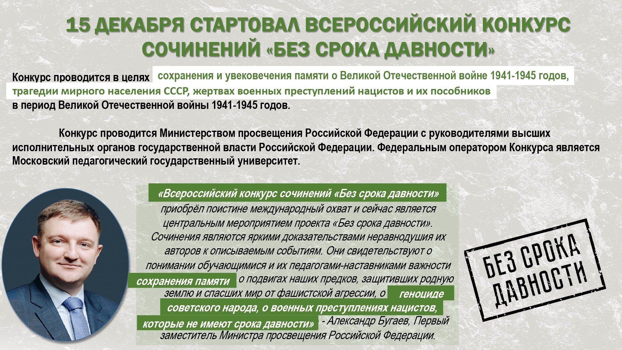 15 декабря стартовал Всероссийский конкурс сочинений «Без срока давности».