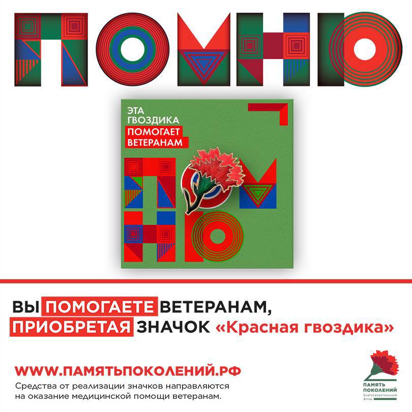 🌹 27 апреля стартовала ежегодная всероссийская акция «Красная гвоздика», которую вот уже 5 лет проводит благотворительный фонд «Память поколений». Цель акции — помочь ветеранам Великой Отечественной войны, тем, кто ценой собственной жизни и здоровья защищал Отечество. Участие в акции может принять каждый, купив значок «Красная гвоздика» в сетевых магазинах-партнерах, на интернет-ресурсах, а также у волонтеров. Собранные средства будут направлены на медицинскую помощь участникам Великой Отечественной войны.