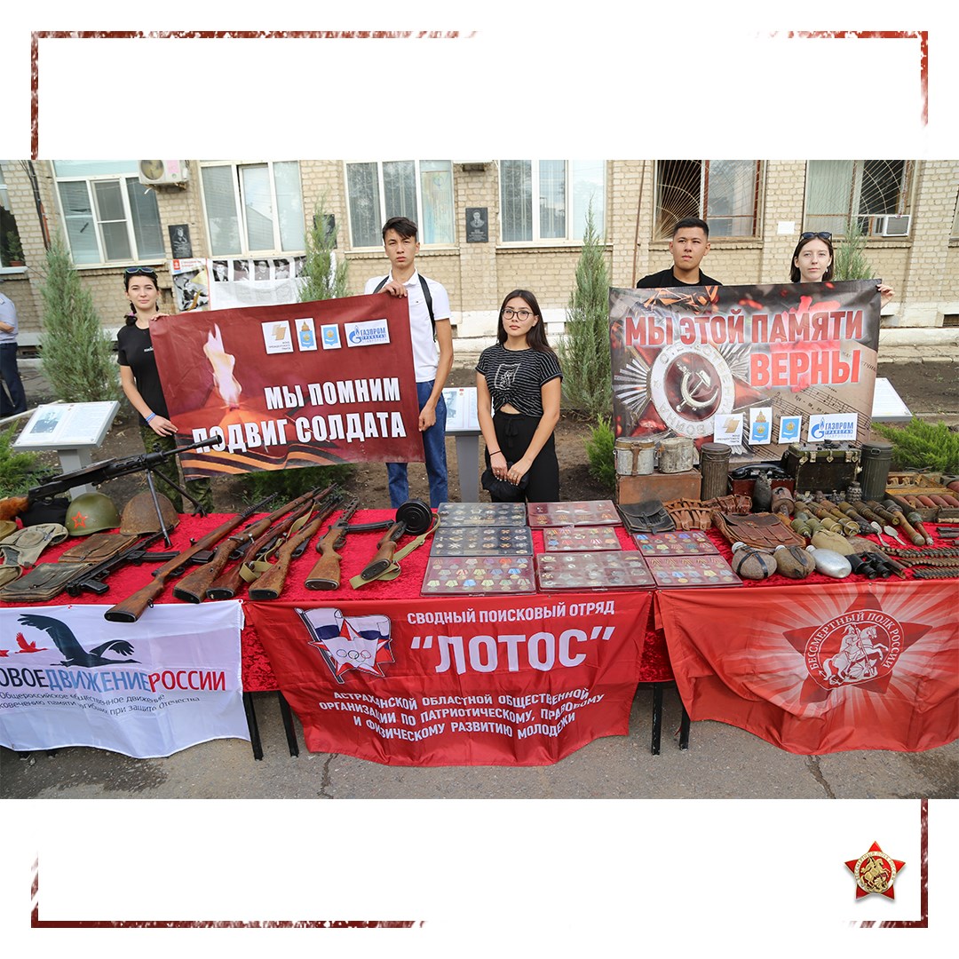 🎖 3 сентября 2021 года в рамках областного патриотического мероприятия «Славы героев достойны», посвящённого 76-ой годовщине окончания Второй мировой войны, по приглашению регионального отделения ДОСААФ России Астраханской области региональное отделение ООД «Бессмертный полк России» в Астраханской области при поддержке управления по связям с общественностью администрации г. Астрахани и регионального отделения «Поискового движения России» организовали патриотическую выставку оружия, военных экспонатов и копий государственных наград времен Великой Отечественной войны.