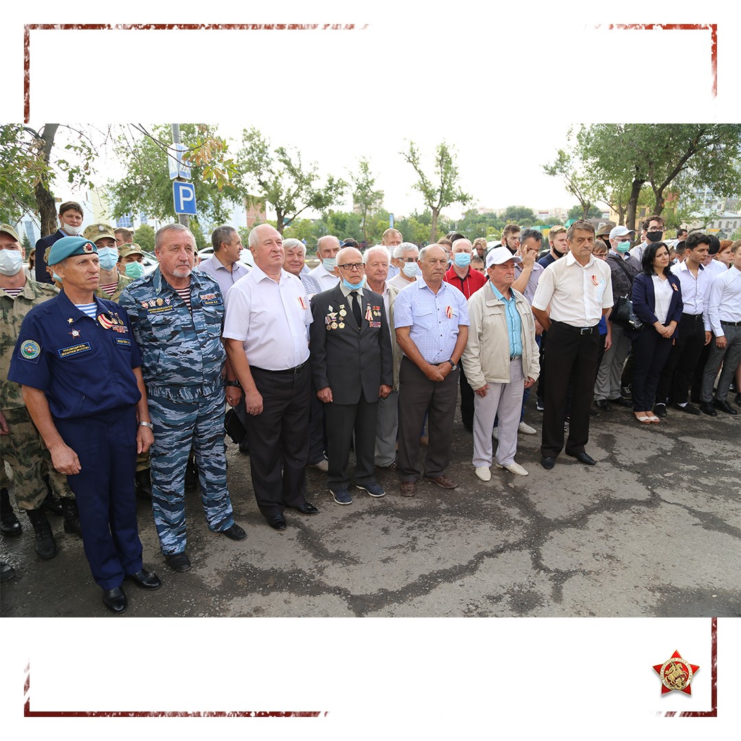 В патриотическом мероприятии приняли участие ветераны войны и труда, Вооруженных Сил и правоохранительных органов, представители администрации города и области, юнармейцы, учащиеся, студенты.