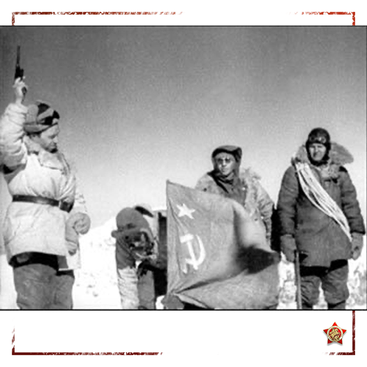 🚩 Уже в феврале 1943 г., сразу после изгнания гитлеровцев, командование Закавказского фронта направило на Эльбрус альпинистов снять фашистские штандарты и установить советские красные флаги.