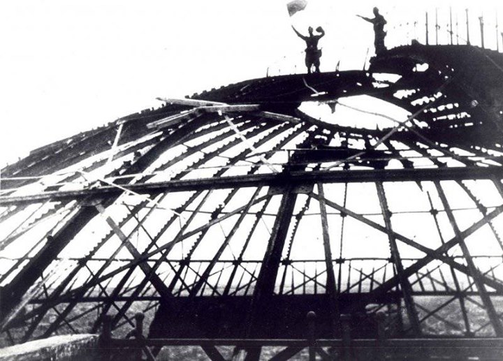 На фото: советские солдаты с флагом на крыше разрушенного здания Панорамы «Оборона Севастополя» в освобожденном Севастополе.