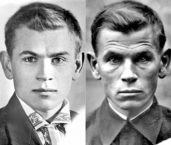 Перед вами — две фотографии одного и того же молодого человека, снятых с разницей в 4 года. 4 года Великой Отечественной войны... На первом фото запечатлён художник Евгений Кобытев в день