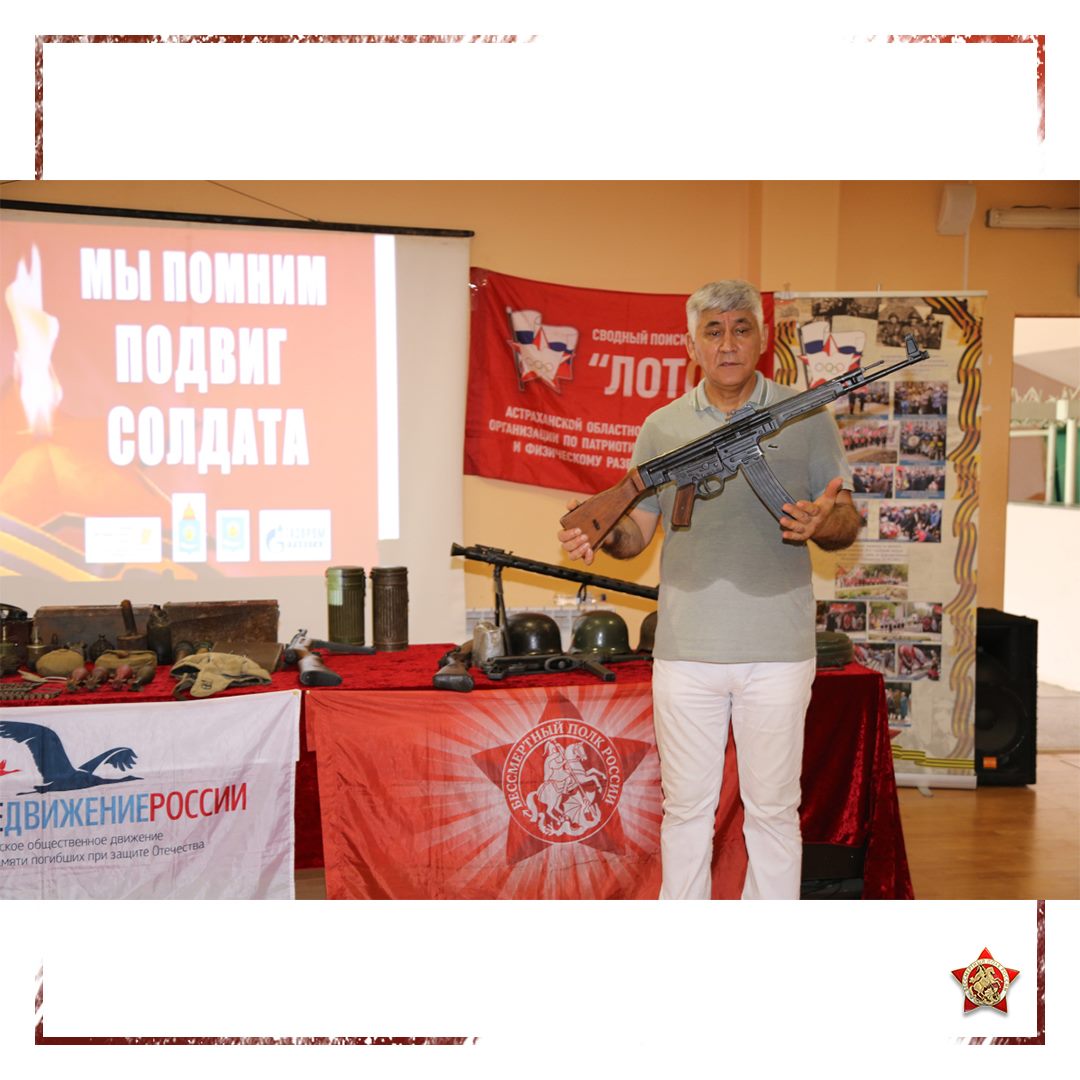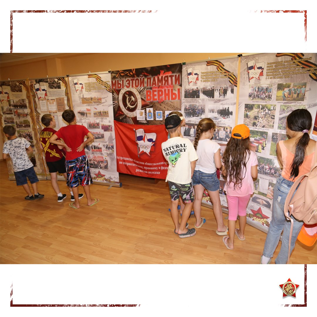 ? Астраханская областная общественная организация по патриотическому, правовому и физическому развитию молодежи и региональное отделение Бессмертного полка России при поддержке управления по связям с общественностью администрации МО «Город Астрахань», поисковых отрядов регионального отделения Поискового движения России организовали и провели на территории санаторно-оздоровительного лагеря круглосуточного действия «Астраханские зори» уроки мужества «Мы помним подвиг солдата», фотовыставки, выставки советского и немецкого оружия, военных экспонатов и государственных наград Российской империи, Советского Союза и Российской Федерации.