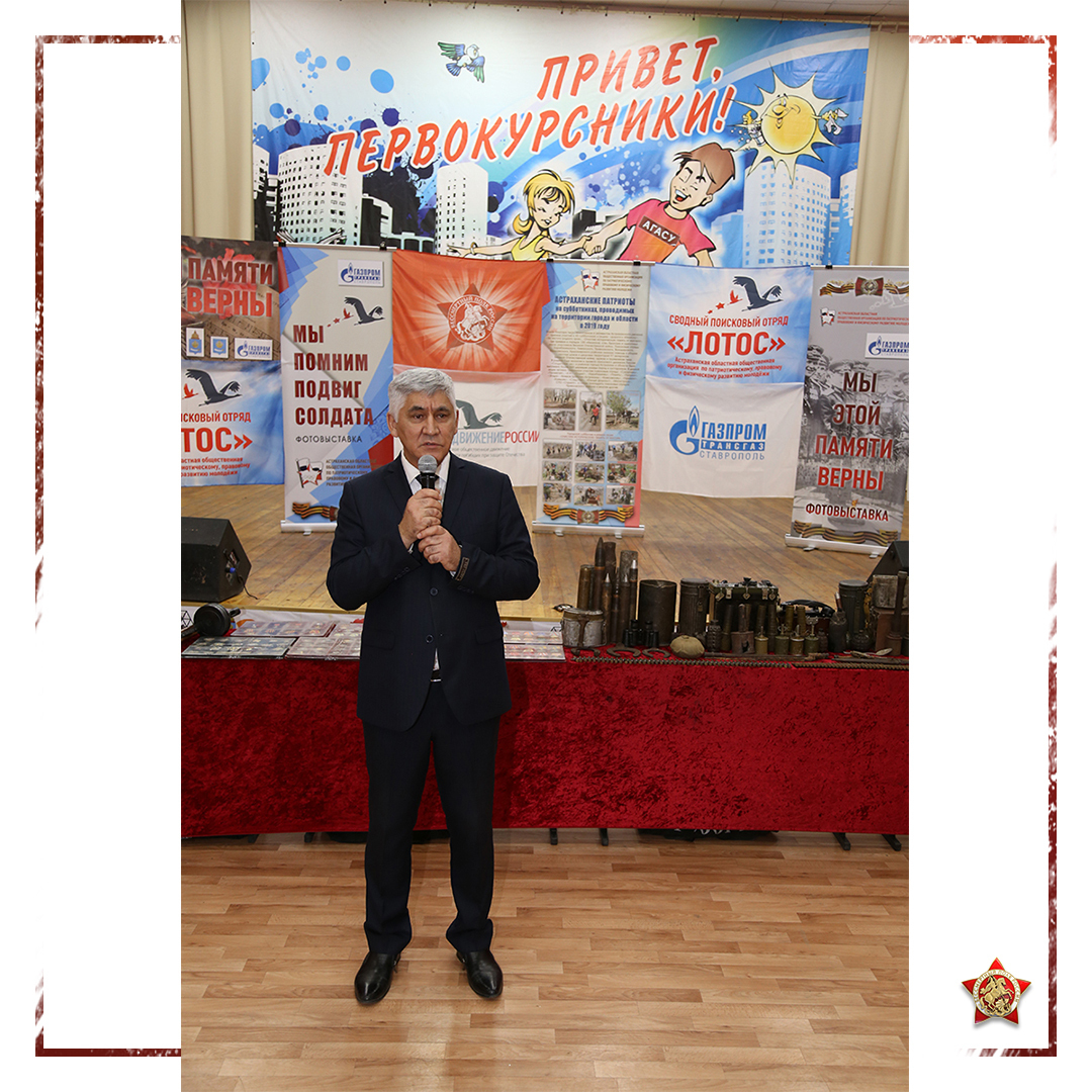 ? Астраханские общественники, в числе которых и региональное отделение Бессмертного полка России, организовали и провели для первокурсников колледжа строительства и экономики Астраханского государственного архитектурно-строительного университета уроки мужества «Мы помним подвиг солдата», на которых руководитель регионального штаба Бессмертного полка России в Астраханской области Искандарбек Даиров рассказал о Великой Отечественной войне, войнах в Афганистане и на Донбассе, о работе общественных организаций в области патриотического воспитания и увековечения памяти погибших при защите Отечества, а также о работе регионального отделения Бессмертного полка России на территории Астраханской области. В уроках мужества приняло участие более 200 студентов и преподавателей.