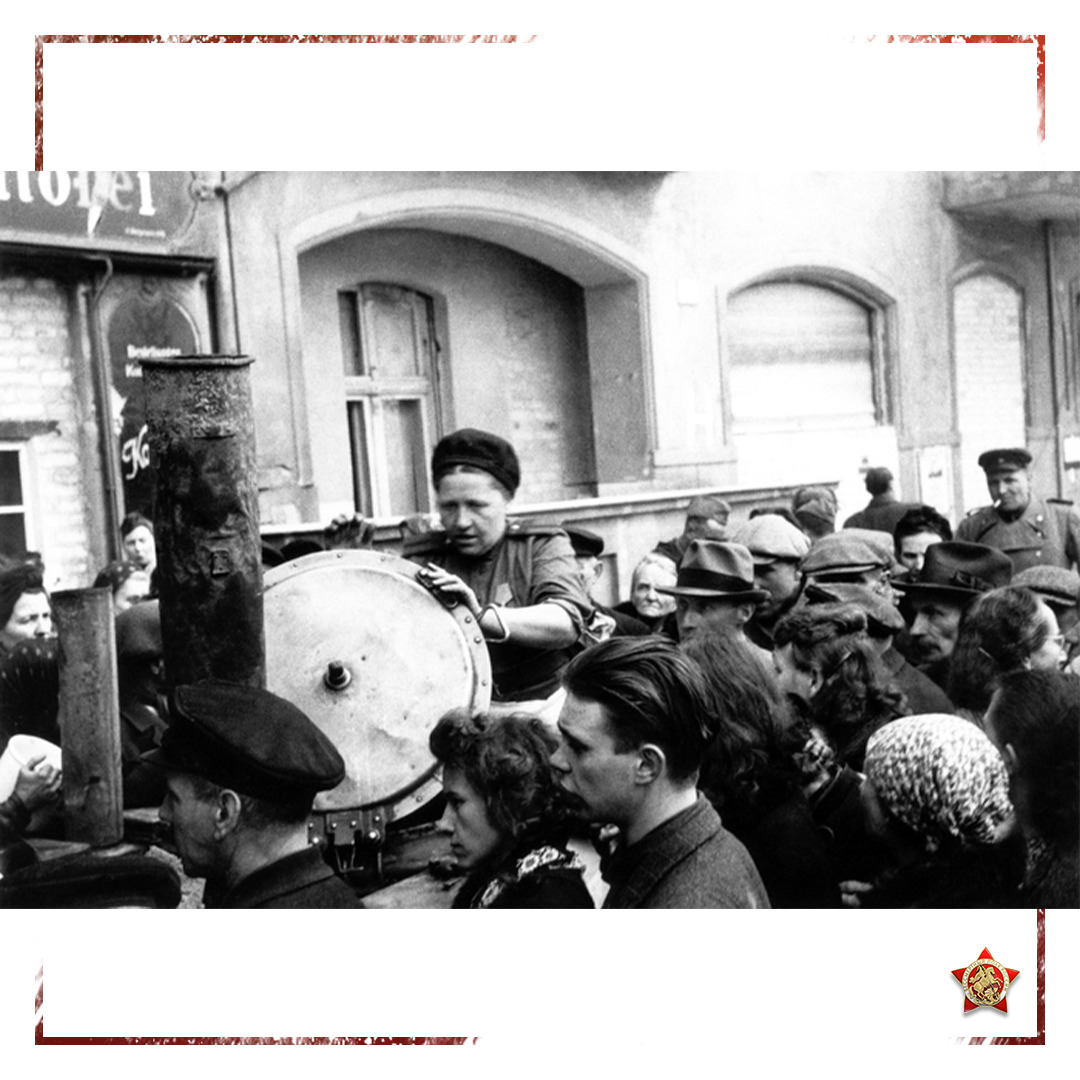 🏙 К тому времени население города насчитывало два миллиона человек, из них половина – дети до 15 лет. Были определены ежедневные нормы снабжения населения продовольственным пайком, включающим в себя хлеб, мясо, жиры (как сказано в документе — «заменены свининой»), сахар, соль, картофель и кофе. Только муки требовалось 392 тонны в сутки, и еще 6 тонн – кофе. При этом, кроме картофеля, на немецких складах не было ничего. «Только силами I и II Белорусских и I Украинского фронтов для снабжения населения столицы Германии было выделено 105 тыс. тонн зерна, 18 тыс. тонн мясопродуктов, 4,5 тыс. тонн жиров и 6 тыс. тонн сахара», — сообщается в приказе. То есть, на одного жителя Берлина в неделю выделялось до 3 кг хлеба, 0,5 кг мяса, почти 1,5 кг сахара, 350 г натурального кофе, а также овощи и молочные продукты. Питанием обеспечивались самые разные категории берлинцев: рабочие, служащие, дети, деятели науки, медицины, культуры, врачи, учителя, больные и иждивенцы.