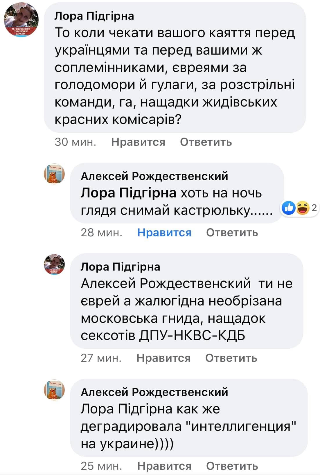 Предмет конференции писательница знает не понаслышке и призвала евреев покаяться за совершенные против украинцев преступления: «Наследники ж_довских гебняков и комиссаров, покаяться за убийство и пытки народа Украины не хотите?».