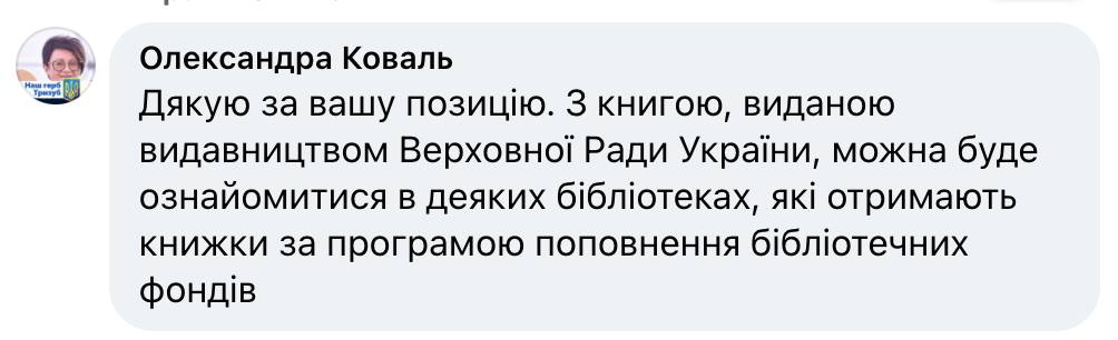 Ивана поддержала глава Украинского института книги Олександра Коваль: — «Спасибо за вашу позицию», пишет госчиновница.