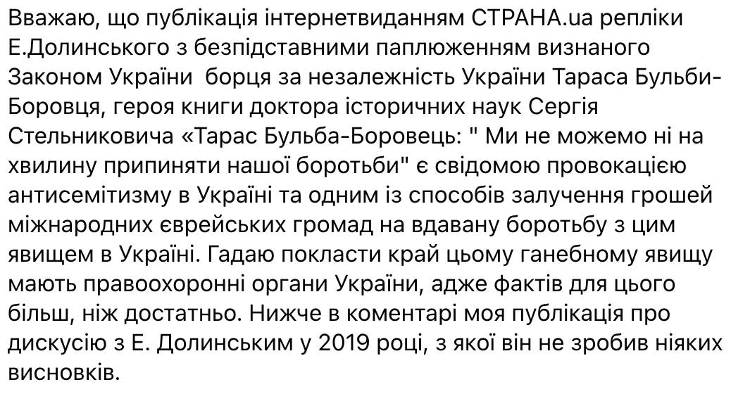 Возмущение у поэта вызвал мой пост о выпуске в издательстве Верховной Рады книги в честь нацистского военного преступника Тараса Бульбы-Боровца и ее закупки Украинским институтом книги для библиотек.
