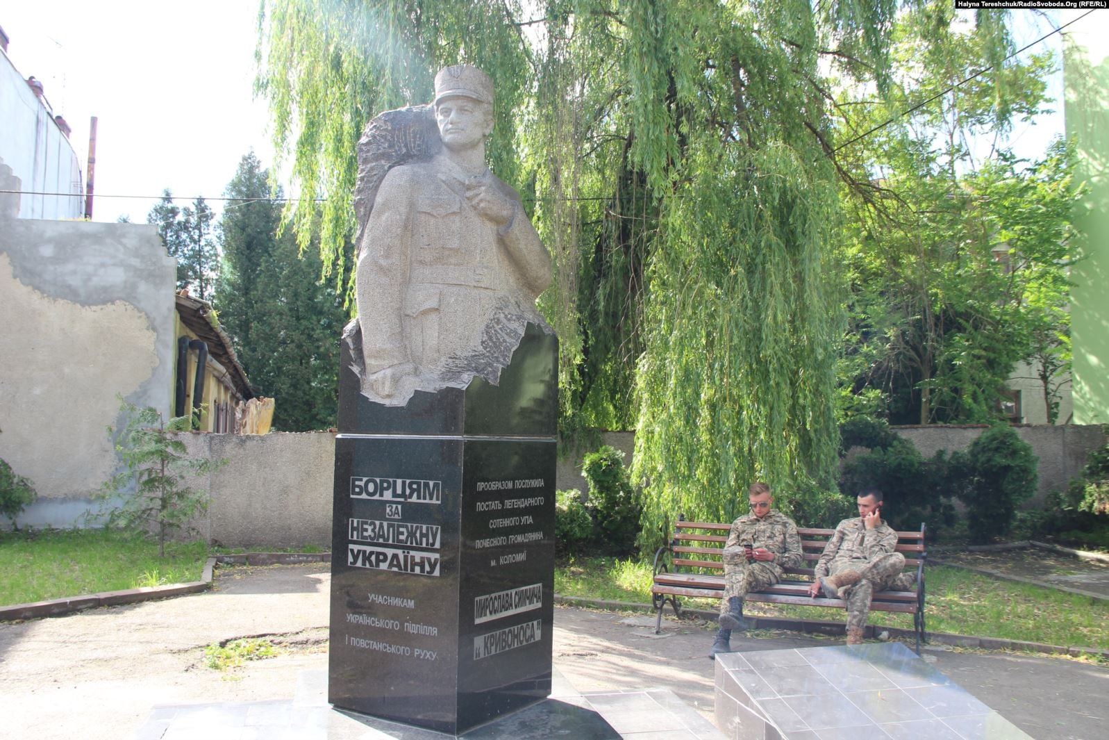 Прижизненный памятник военному преступнику, организатору массового уничтожения мирного польского населения Ивано-Франковской области 97-летнему Мирославу Симчичу. В материалах послевоенного уголовного дела
