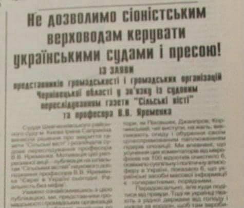 В 2004 году в черновицкой газете «Буковина» было опубликовано заявление патриотической общественности «Не позволим сионистским верховодам управлять украинскими судами и прессой».