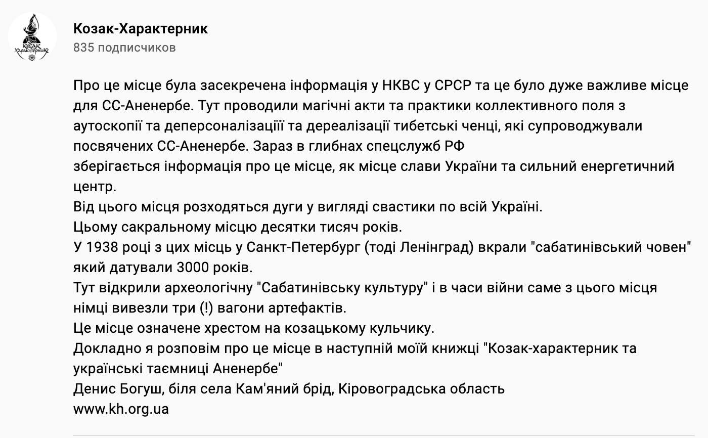 Более того, «от этого места расходятся дуги в виде свастики по всей Украине. Во время войны немцы вывезли оттуда три вагона артефактов, а русские украли лодку, которой три тысячи лет».