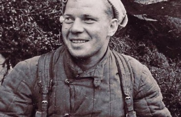 Член экипажа советской самоходной артиллерийской установки СУ-76 у прицела орудия. 1943 г.