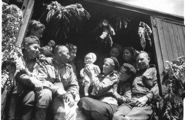 Трижды Герой Советского Союза гвардии майор Иван Никитович Кожедуб и дважды Герой Советского Союза гвардии майор Кирилл Алексеевич Евстигнеев. Германия, 1945 год.