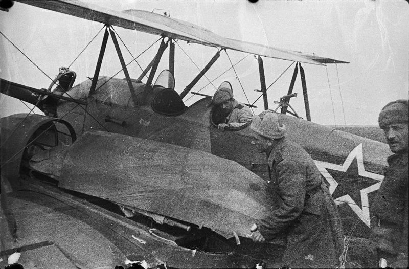 Погрузка раненых в советский самолет У-2 для эвакуации с южного берега озера Сиваш. Самолет оборудован кассетами Бакшаева, вмещавшими одного раненого на носилках. Апрель 1944 г.