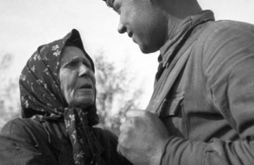 Женщины ведут немецких солдат Вернера Пеле и Курта Шпицнера, плененных в селе под Москвой. Декабрь 1941 г.