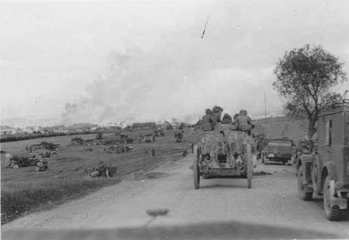 Наступающие части вермахта в Белоруссии. Снимок сделан из окна автомобиля. Июнь 1941 г.