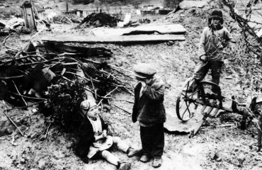Советские бойцы 11-го отряда 3-й Ленинградской партизанской бригады ведут бой с карателями. 1943 год. На переднем плане — партизан-пулеметчик М.В. Юхнов.