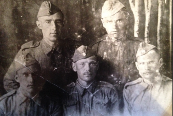 На фото справа первый ряд Матлушинский Иван Васильевич — отец, по центру Ярмолюк Василий Карпович — погиб в 1945 г.на територии Чехии, слева первий ряд Матлошинский Григорий Сидорович — двоюродний брат. Во втором ряду неустаноленные солдаты. Уроженцы с.Садки Ровенской обл. Отец воевал на Ленинградском фронте освобождал г.Ленинград. Был ранен. Награжден медаллю за освобождение Ленинграда.