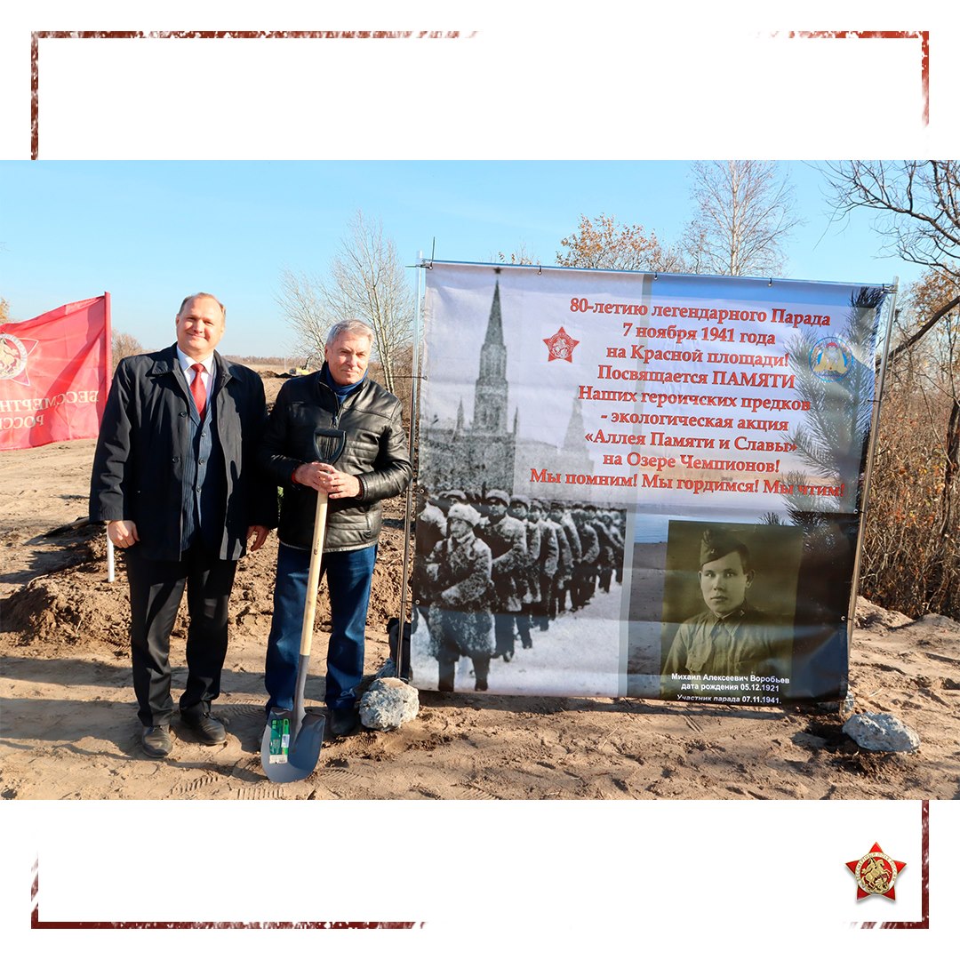 Подготовка площадки под посадку деревьев началась еще летом: провели работу по отсыпке болота, завезли чернозем. Создание Аллеи памяти приурочено к 80-летию легендарного парада на Красной площади, 7 ноября 1941 года в Москве. Соответственно и длиться эта экологическая акция будет до 7 ноября, участие может принять каждый желающий. Сейчас деревья уже сажают до 20 человек ежедневно, это неравнодушные тюменцы, спортсмены, общественные деятели.