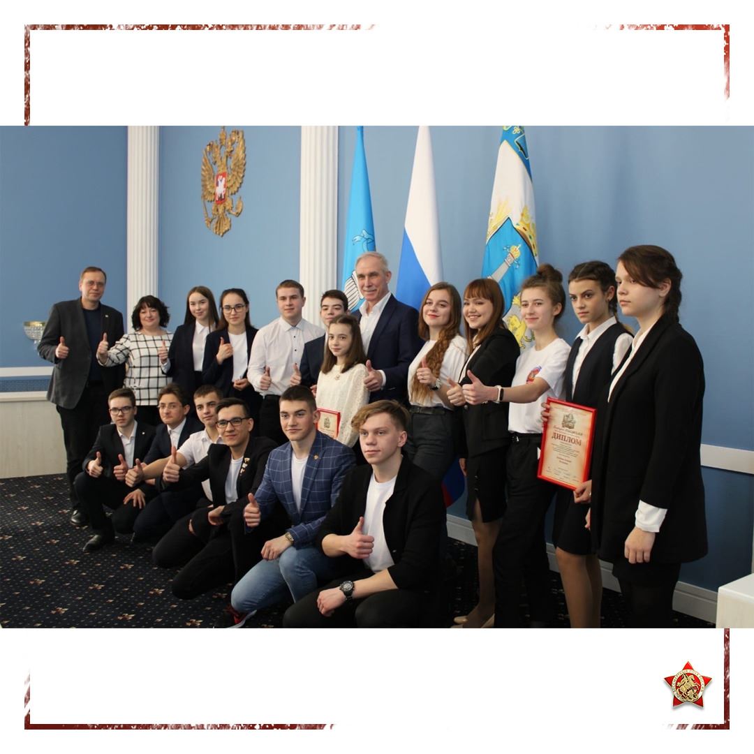 ? Награждение двух победителей регионального этапа Всероссийского конкурса исследовательских работ «Правнуки победителей» 2020 года состоялось в Правительстве Ульяновской области на заседании детской Общественной палаты региона с участием Губернатора Ульяновской области Сергея Морозова и руководителя регионального штаба Бессмертного полка России Дмитрия Травкина.