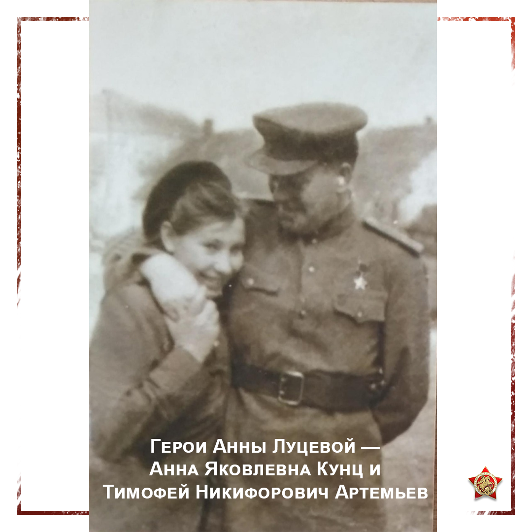 👍 Эта инициатива показалась интересной партнерам Бессмертного полка России – Московском дому соотечественника. Они пообещали подарить книгу автору лучшей, по их мнению, истории. Им стала внучка Анны Яковлевны Кунц (в девичестве Ковалевой) Анна Луцева, приславшая удивительную историю любви своей бабушки и ее супруга Тимофея Никифоровича Артемьева, ставшего героем Советского Союза и погибшем буквально за месяц до окончания войны (https://www.polkrf.ru/znamenoszy-pobedy/znamenoscy-v-kazhdoj-seme/vojna-i-lyubov-2830/).