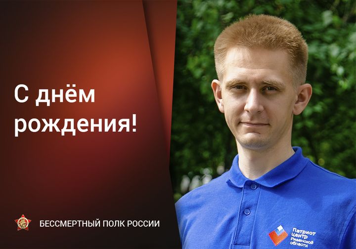 ? Сегодня День рождения отмечает руководитель штаба регионального отделения ООД «Бессмертный полк России» в Рязанской области Кузьмин Никита Владимирович.