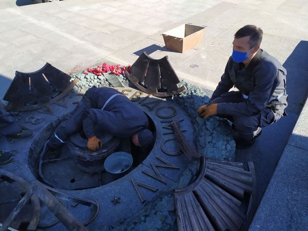 На приведение мемориала в порядок была направлена ремонтная бригада. Рабочим пришлось полностью разобрать конструкцию, чтобы удались мусор и привести ее в нормальное состояние. В мемориале вновь горит огонь.