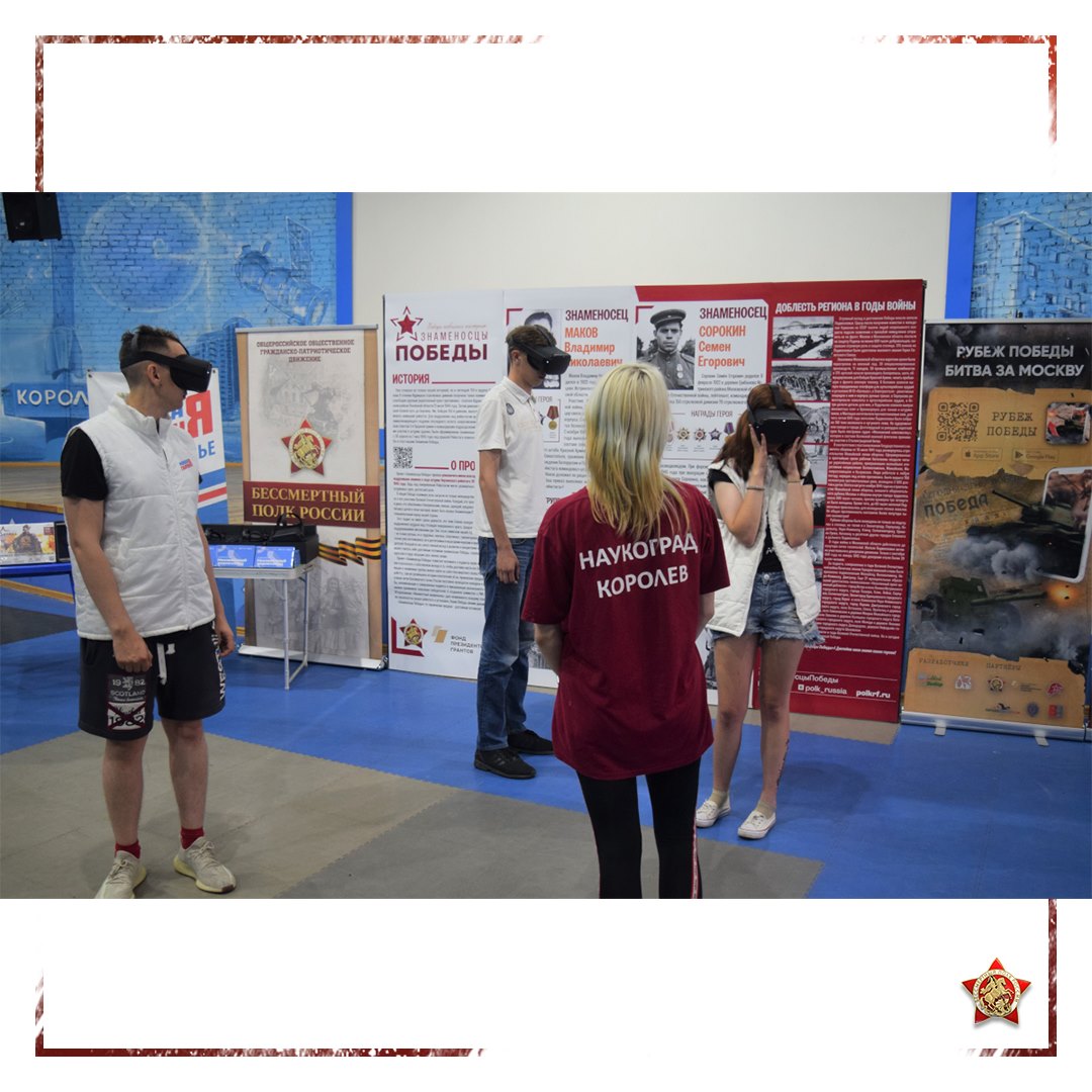 ? Представители Молодой Гвардии поделились опытом реализации патриотических проектов и практикой поддержки ветеранов на территории Королева. Не обошлось без подарков: от отделения Бессмертного полка России в Московской области молодежь Королева получила образовательные наборы «Великая Отечественная война. Серия 1941—1942», разработанные специалистами лаборатории дополненной реальности ARLab.me и VR-очки.