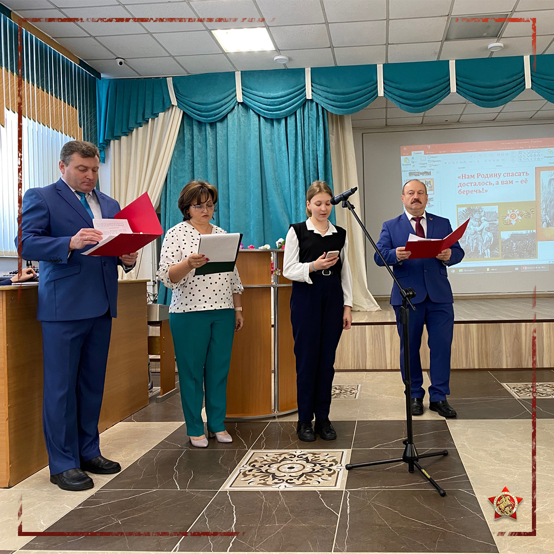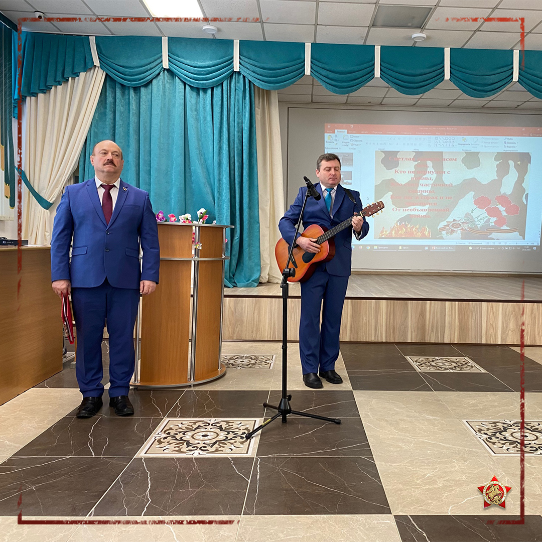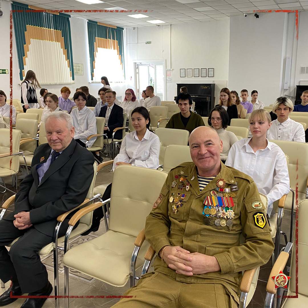 О воинской службе, о войне в Афганистане, о воинском долге и боевом братстве ребятам поведали Андрей Старков и Иван Лахно, чья служба в Афганистане стало частью их жизни, сыгравшую огромную роль в формировании их личностей и всей жизненной позиции. Педагог школы, ветеран боевых действий на Северном Кавказе Сергей Данько вспомнил, как он, выпускник летного училища, попал служить на Северный Кавказ и принял участие в проведении контртеррористической операции. А исполненная им песня под гитару была встречена аплодисментами.