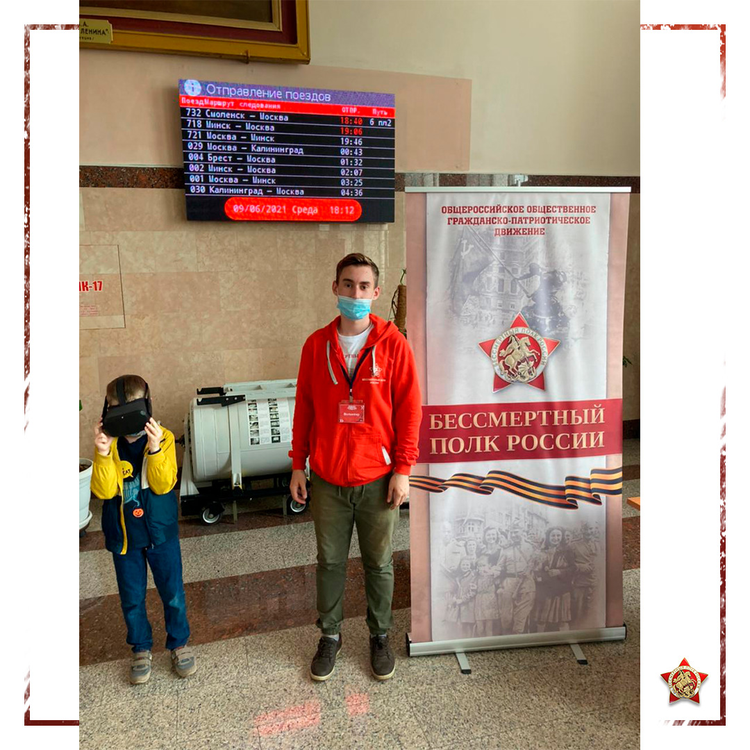 🚂 Первая экскурсия по «Поезду Победы» началась в зале ожидания железнодорожного вокзала: здесь объявили о прибытии поезда, и гости экспозиции увидели, как родные и близкие встречали воинов-победителей. На вокзале также работала площадка Бессмертного полка России «Знаменосцы Победы», где все желающие в формате виртуальной реальности могли установить свое Знамя Победы над поверженным Рейхстагом, и выставка творческих работ, выполненных учащимися смоленской художественной школы имени М.К. Тенишевой.