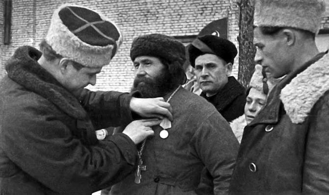 Среди героев Великой Отечественной войны было и много священников. На фото всего несколько примеров. Священник-партизан Федору Пузанов, архимандрит Алипий, монахиня Адриана.