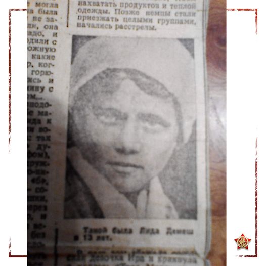 ◼️ За свою партизанскую деятельность Оля поплатилась сестрой. Лиде тогда едва исполнилось 13 лет. В партизанском отряде ее звали «Птенчик». «Лида часто брала корзину или сумку и уходила на железнодорожные пути собирать уголь и, если ее останавливали часовые, она объясняла, что собирает уголь, чтобы отапливать комнату, в которой живут немцы. Таким образом она пробиралась туда, куда ей нужно было», – вспоминал младший брат Борис Демеш. «Она у меня была проводником, мы с ней ходили по Орше, она впереди, а я позади на расстоянии, — рассказывала Валентина Реутова. — Ходили к одному врачу за медикаментами — он работал у немцев в госпитале. Ходили на свидание и знакомство с власовцами (было и такое задание), и всюду со мной была Лида. Она очень умная и сообразительная, ей не надо подсказывать, она все сама знала. Где я не могла пройти, шла она: она была маленькая, и ее нигде не задерживали и пропускали, и она смотрела все, что надо, и пересказывала мне. Ходили с ней на железнодорожную станцию, смотрели, какие стоят поезда. Например, когда увидели цистерны с горючим, то сразу вернулись и взяли магнитную мину с двухчасовым механизмом. Движение на железнодорожном узле после взрыва было парализовано на 4 часа».